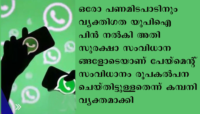രണ്ടുവര്ഷത്തിൽ അധികം കാത്തിരുന്നതിന് ശേഷമാണ് അനുമതി നൽകിയത്. ഇടപാട് നടത്താനായി വാട്ട്സാപ്പ് പേ ആപ്പ് കമ്പനി പുറത്തിറക്കി. ഒരോ പണമിടപാടിനും വ്യക്തിഗത യുപിഐ പിന് നല്കി അതിസുരക്ഷാ സംവിധാനങ്ങളോടെയാണ് പേയ്മെന്റ് സംവിധാനം രൂപകല്പന ചെയ്തിട്ടുള്ളതെന്ന് കമ്പനി വ്യക്തമാക്കി. ഐ ഫോണ്, ആന്ഡ്രോയ് അപ്ലിക്കേഷനുകള് വഴിയാണ് സേവനം ലഭ്യമാകുന്നത്.