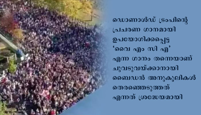 വൈറ്റ് ഹൗസിനു പുറത്ത് വൈ എം സി എ ഗാനത്തിനൊത്ത് ചുവടുവച്ച് ബൈഡൻ ആരാധകർ
