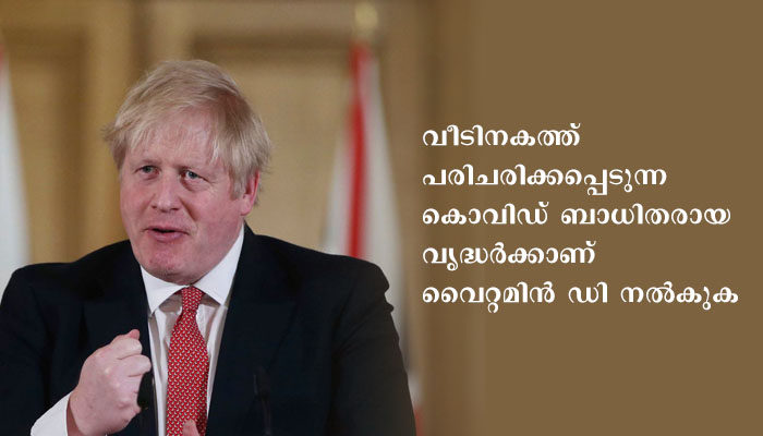 ലണ്ടൻ: ഏറ്റവും ദുർബലരായ കൊവിഡ് രോഗികൾക്ക് ‘വൈറ്റമിൻ ഡി’ നൽകാനുള്ള ഒരു പദ്ധതിക്ക് അന്തിമ രൂപം നൽകിയിരിക്കുകയാണ് ബ്രിട്ടീഷ് ഗവൺമെൻറ്. വീടിനകത്ത് പരിചരിക്കപ്പെടുന്ന കൊവിഡ് ബാധിതരായ വൃദ്ധർക്കാണ് വൈറ്റമിൻ ഡി നൽകുക. സ്കോട്ടിഷ് ഗവൺമെന്റ് സമാനമായ നീക്കം നേരത്തേ നടത്തിയിരുന്നു.