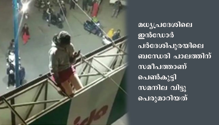 മധ്യപ്രദേശിലെ ഇന്‍ഡോര്‍ പര്‍ദേശിപുരയിലെ ബന്ധേരി പാലത്തിന് സമീപത്താണ് പെൺകുട്ടി സമനില വിട്ടു പെരുമാറിയത്. കാമുകനുമായുള്ള തന്റെ ബന്ധം കുടുംബം അംഗീകരിക്കണമെന്നാണ് പെൺകുട്ടി ആവശ്യപ്പെട്ടത്.