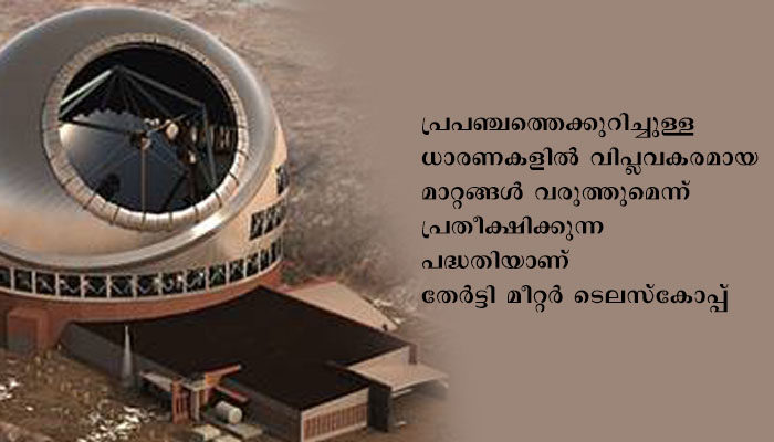 ന്യൂ ഡൽഹി: ഹവായിയിലെ മൗനക്കിയയിൽ സ്ഥാപിക്കുന്ന തേർട്ടി മീറ്റർ ടെലസ്കോപ്പ് വികസന പദ്ധതിയിൽ 2020ലെ ഊർജതന്ത്ര നൊബേൽ പുരസ്കാര ജേതാവ് പ്രൊഫസർ ആൻഡ്രിയ ഗേസുമായി സഹകരിച്ഛ് ഇന്ത്യൻ ബഹിരാകാശ ശാസ്ത്രജ്ഞർ. പ്രപഞ്ചത്തെക്കുറിച്ചുള്ള ധാരണകളിൽ വിപ്ലവകരമായ മാറ്റങ്ങൾ വരുത്തുമെന്ന് പ്രതീക്ഷിക്കുന്ന പദ്ധതിയാണ് തേർട്ടി മീറ്റർ ടെലസ്കോപ്പ്.