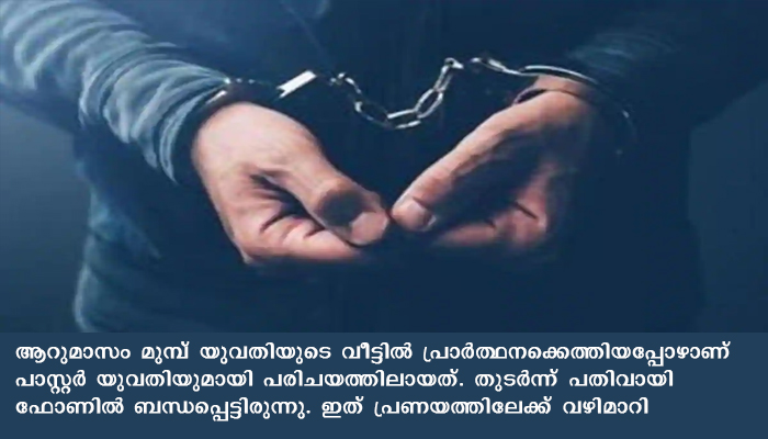 ആറുമാസം മുമ്പ് യുവതിയുടെ വീട്ടില് പ്രാര്ത്ഥനക്കെത്തിയപ്പോഴാണ് പാസ്റ്റര് യുവതിയുമായി പരിചയത്തിലായത്. തുടര്ന്ന് പതിവായി ഫോണില് ബന്ധപ്പെട്ടിരുന്നു. ഇത് പ്രണയത്തിലേക്ക് വഴിമാറി. യുവതിക്ക് വിവാഹാലോചനകള് വന്നതോടെ നാടുവിടാമെന്ന് യുവതി ആവശ്യപ്പെടുകയായിരുന്നു.