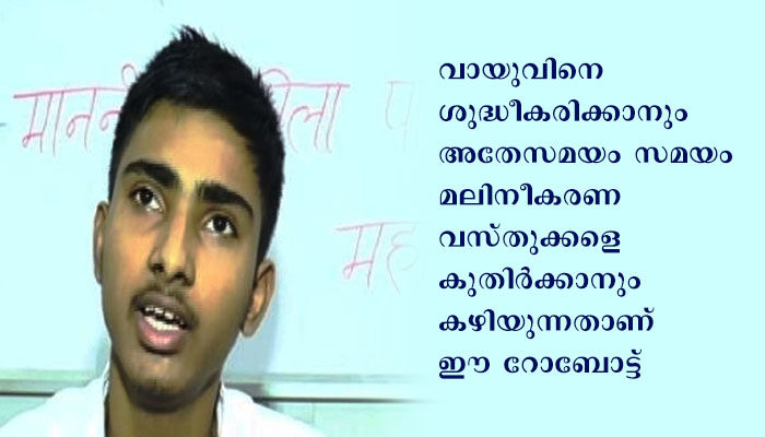കാണ്പുര്: ശുദ്ധവായു വേണോ, ഇവന് സഹായിക്കും, പറയുന്നത് കാണ്പുരില്നിന്നുള്ള ഒരു സ്കൂള് വിദ്യാര്ഥിയാണ്. പതിനൊന്നാം ക്ലാസ് വിദ്യാര്ഥിയുമായ പ്രാഞ്ചലിന്റെ സുഹൃത്താണ് ശുദ്ധവായു നല്കുക. ആ കൂട്ടുകാരന് ഒരു റോബോട്ടാണെന്ന് മാത്രം. സഹപാഠിയായ അരേന്ദ്രയ്ക്കൊപ്പം പ്രാഞ്ചല് വികസിപ്പിച്ചെടുത്ത എയര് പ്യൂരിഫയര് സാങ്കേതികവിദ്യയില് പ്രവര്ത്തിക്കുന്ന റോബോട്ടാണിത്.
