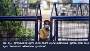 പൊതുയിടങ്ങളില് മാസ്ക് ധരിക്കാതിരുന്നാല് പിഴ 500 രൂപയാക്കി വര്ദ്ധിപ്പിച്ചു. നിലവില് 200 രൂപയാണ് പിഴ. 500 രൂപ ഈടാക്കിയിരുന്ന നിയന്ത്രണ ലംഘനങ്ങള്ക്ക് ഇനിമുതല് 5000 രൂപ വരെയായി പിഴശിക്ഷ ഉയര്ത്തി. ക്വാറന്റൈന് ലംഘനം, ലോക്ക്ഡൗണ് ലംഘനം, നിയന്ത്രണം ലംഘിച്ച കൂട്ടം കൂടല് എന്നിവയ്ക്ക് ഇനി വര്ദ്ധിപ്പിച്ച പിഴ നല്കണം.
