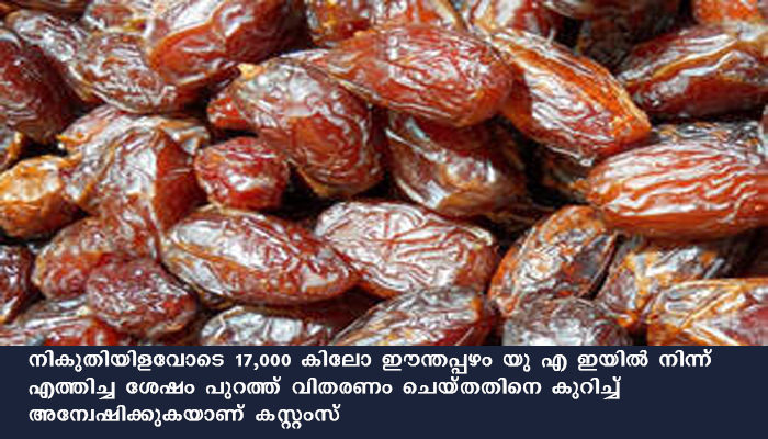 തിരുവനന്തപുരം: യുഎഇ കോണ്‍സുലേറ്റില്‍ നിന്നുളള 17,000 കിലോ ഈന്തപ്പഴമാണ് മൂന്നുവര്‍ഷം കൊണ്ട് കേരളത്തിലെത്തിച്ചത്. ഇത്രയധികം ഈന്തപ്പഴം വാണിജ്യ ആവശ്യത്തിനല്ലാതെ ഇറക്കുമതി ചെയ്തതില്‍ അസ്വഭാവികത ഉണ്ടെന്ന് കസ്റ്റംസ് പറയുന്നു. ഈന്തപഴം സാമൂഹ്യ നീതി വകുപ്പിന് കീഴിലെ സ്ഥാപനങ്ങളില്‍ വിതരണം ചെയ്തത് ഐടി സെക്രട്ടറി എം ശിവശങ്കരന്റെ നിര്‍ദ്ദേശ പ്രകാരമാണെന്ന് രേഖകള്‍.
