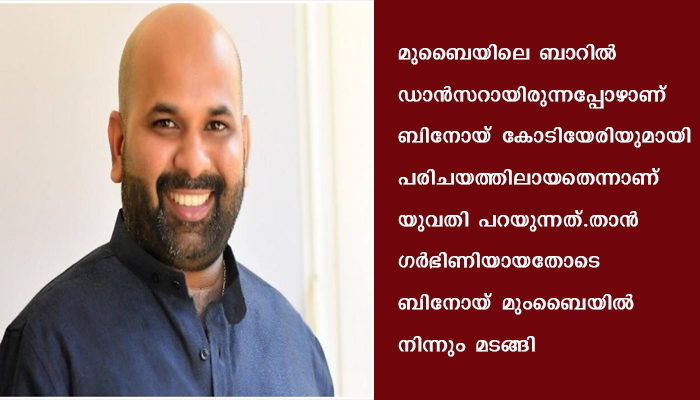മുബൈയിലെ ബാറില്‍ ഡാന്‍സറായിരുന്നപ്പോഴാണ് ബിനോയ് കോടിയേരിയുമായി പരിചയത്തിലായതെന്നാണ് യുവതി പറയുന്നത്.താന്‍ ഗര്‍ഭിണിയായതോടെ ബിനോയ് മുംബൈയില്‍ നിന്നും മടങ്ങി. ചെലവുകള്‍ നോക്കുന്നതിൽ നിന്നും ഒഴിഞ്ഞുമാറി. പിന്നീട് ബിനോയിയുടെ വിവാഹം നടന്നതായി അറിഞ്ഞതെന്നും യുവതി ആരോപിക്കുന്നു.