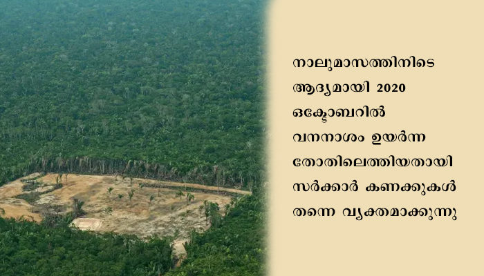ബ്രസീലിയൻ സർക്കാരിന്റെ ബഹിരാകാശ ഗവേഷണ ഏജൻസിയായ ഇൻപെയുടെ പ്രാഥമിക കണക്കുകൾ പ്രകാരം ഒക്ടോബറിൽ വനനശീകരണം 50 ശതമാനം ഉയർന്ന് 836 ചതുരശ്ര കിലോമീറ്ററായി മാറി.