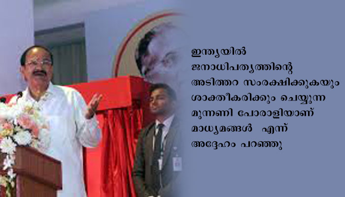 ന്യൂ ഡൽഹി: മാധ്യമ സ്വാതന്ത്ര്യത്തിന് എതിരായ ഏതൊരു ആക്രമണവും ദേശ താൽപര്യത്തിന് വിരുദ്ധമാണെന്നും എല്ലാവരും അതിനെ എതിർക്കണമെന്നും ഉപരാഷ്ട്രപതി ശ്രീ എം.വെങ്കയ്യനായിഡു. ഇന്ത്യയിൽ ജനാധിപത്യത്തിന്റെ അടിത്തറ സംരക്ഷിക്കുകയും ശാക്തീകരിക്കും ചെയ്യുന്ന മുന്നണി പോരാളിയാണ് മാധ്യമങ്ങൾ എന്ന് അദ്ദേഹം പറഞ്ഞു. ദേശീയ മാധ്യമ ദിനത്തോടനുബന്ധിച്ച് ‘കോവിഡ്-19 മഹാമാരി കാലയളവിൽ മാധ്യമങ്ങളുടെ പങ്കും, മാധ്യമ രംഗത്ത് കോവിഡ് 19ന്റെ സ്വാധീനവും’ എന്ന വിഷയത്തിൽ പ്രസ് കൗൺസിൽ ഓഫ് ഇന്ത്യ സംഘടിപ്പിച്ച വെബിനാറിൽ വീഡിയോ സന്ദേശത്തിലൂടെ സംസാരിക്കുകയായിരുന്നു അദ്ദേഹം.