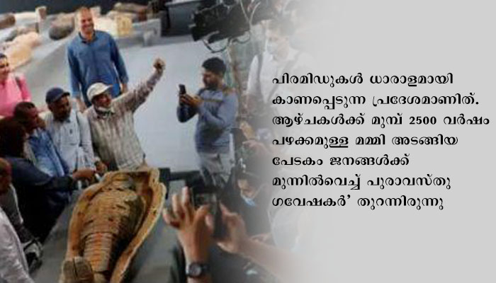 കഴിഞ്ഞ സെപ്റ്റംബറില് ഏകദേശം 2,500 വര്ഷം പഴക്കമുള്ള 13 മമ്മികള് കണ്ടെത്തിയിരുന്നു.