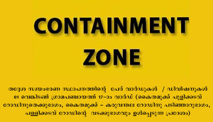 01 വെങ്കിടങ്ങ് ഗ്രാമപഞ്ചായത്ത് 17-ാം വാര്‍ഡ് (കെെതമുക്ക് പുളിക്കടവ് റോഡിനുതെക്കുഭാഗം, കെെതമുക്ക് – കരുവന്തല റോഡിനു പടിഞ്ഞാറുഭാഗം, പള്ളിക്കടവ് റോഡിന്റെ വടക്കുഭാഗവും ഉള്‍പ്പെടുന്ന പ്രദേശം)