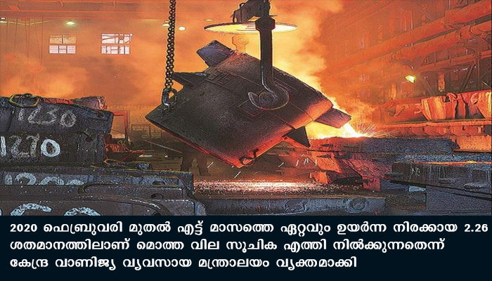 കഴിഞ്ഞ വര്ഷം ഒക്ടോബറില് പൂജ്യമായിരുന്ന മൊത്ത വിലസൂചിക ഈ മാസം 1.48 ശതമാനത്തിലേക്കാണ് കുതിച്ചത്. ഉപഭോക്തൃ വില സൂചിക പ്രകാരം രാജ്യത്തെ വിലക്കയറ്റം 7.61 ശതമാനമാണെന്നു സര്ക്കാര് കഴിഞ്ഞയാഴ്ച പുറത്തിറക്കിയ കണക്കുകളില് പറയുന്നു. നിലവില് ഭക്ഷ്യേതര വസ്തുക്കളുടെയും ധാതുക്കളുടെയും പണപ്പെരുപ്പം യഥാക്രമം 2.85 ശതമാനവും 9.11 ശതമാനവുമാണ്.