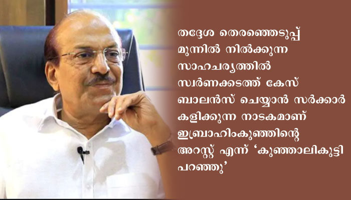 “ഇബ്രാഹിം കുഞ്ഞിന്റെ അറസ്റ്റ് അനവസരത്തിലുള്ളതാണ്. ഇബ്രാഹിം കുഞ്ഞിനെതിരായ കേസില് അന്വേഷണം നേരത്തെ പൂര്ത്തിയായതാണ്. തദ്ദേശ തെരഞ്ഞെടുപ്പ് മുന്നില് നില്ക്കുന്ന സാഹചര്യത്തില് സ്വര്ണക്കടത്ത് കേസ് ബാലന്സ് ചെയ്യാന് സര്ക്കാര് കളിക്കുന്ന നാടകമാണ് ഇബ്രാഹിംകുഞ്ഞിന്റെ അറസ്റ്റ് ” കുഞ്ഞാലികുട്ടി പറഞ്ഞു.