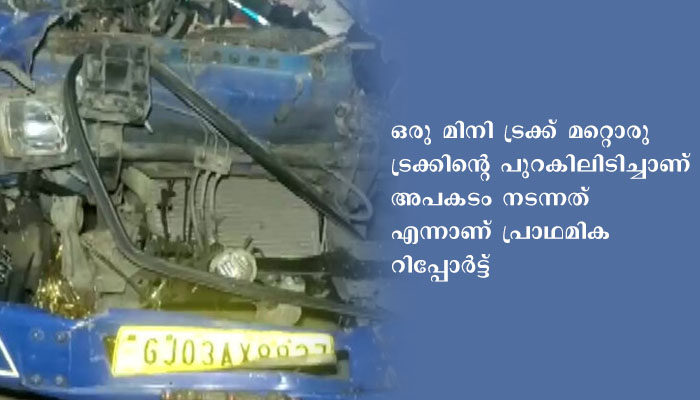 ഒരു മിനി ട്രക്ക് മറ്റൊരു ട്രക്കിന്റെ പുറകിലിടിച്ചാണ് അപകടം നടന്നത് എന്നാണ് പ്രാഥമിക റിപ്പോര്ട്ട്. മരിച്ചവരില് 10 പേരും സൂറത്തില് നിന്നും പഞ്ച്മഹലിലേക്ക് പോകുകയായിരുന്നു. ഡ്രൈവറുടെ അശ്രദ്ധ മൂലമാണ് അപകടമുണ്ടായതെന്ന് പോലീസ് സംശയിക്കുന്നു.