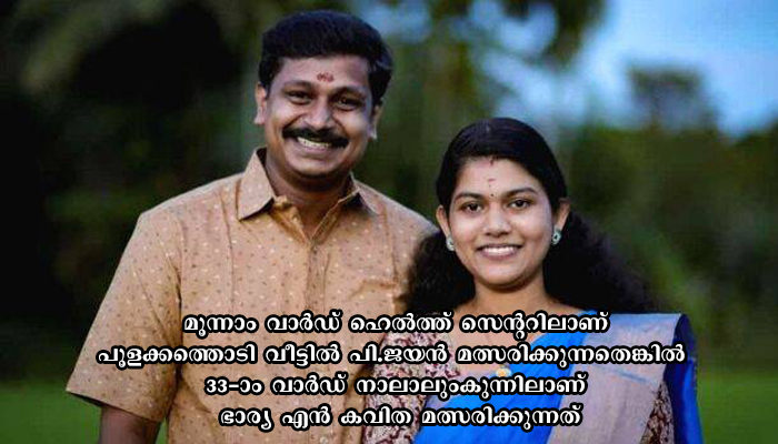 ചെർപ്പുളശ്ശേരി: ചെർപ്പുളശ്ശേരി നഗരസഭയിൽ ജനവിധി തേടുന്ന അദ്ധ്യാപക ദമ്പതികളാണ് ജയനും കവിതയും . മൂന്നാം വാർഡ് ഹെൽത്ത് സെന്ററിലാണ് പൂളക്കത്തൊടി വീട്ടിൽ പി.ജയൻ മത്സരിക്കുന്നതെങ്കിൽ 33-ാം വാർഡ് നാലാലുംകുന്നിലാണ് ഭാര്യ എൻ കവിത മത്സരിക്കുന്നത് .