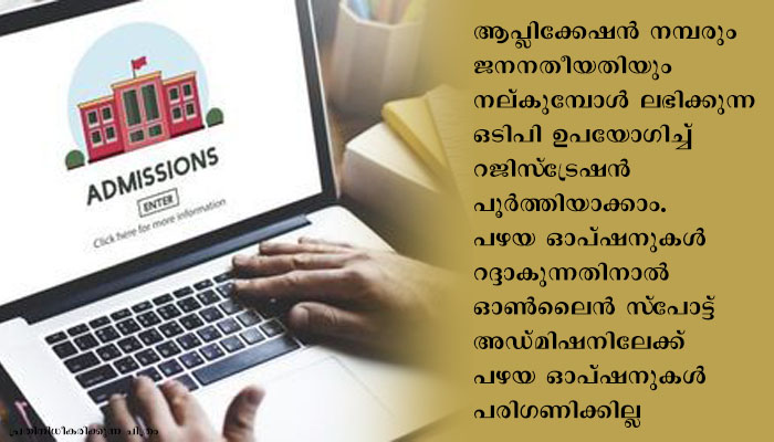 പുതുതായി ചേരാൻ താല്പര്യമുള്ള പത്ത് ഓപ്ഷനുകൾ വരെ ഓൺലൈനായി സമർപ്പിക്കാം. നിലവിൽ ലഭ്യമായ ഒഴിവുകൾ പോളീടെക്നിക് കോളേജ് അടിസ്ഥാനത്തിൽ www.polyadmission.org എന്ന വെബ്സൈറ്റിലെ ‘Vacancy position” എന്ന ലിങ്ക് വഴി മനസ്സിലാക്കാം. ഒഴിവുകൾ പരിശോധിച്ചതിനുശേഷമേ പുതിയതായി ഓപ്ഷൻ നൽകാവൂ. ഓൺലൈൻ സ്പോട്ട് അഡ്മിഷനു വേണ്ടി പ്രത്യേകം രജിസ്റ്റർ ചെയ്യാത്തവരെ സ്പോട്ട് അഡ്മിഷനിൽ പങ്കെടുപ്പിക്കില്ല. ഇപ്പോൾ നടത്തുന്ന രജിസ്ട്രേഷൻ ഈ സ്പോട്ട് അഡ്മിഷനിൽ മാത്രം ബാധകമായിരിക്കും.