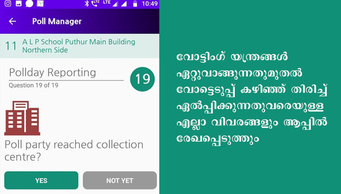 തൃശ്ശൂർ: തദ്ദേശ തിരഞ്ഞെടുപ്പ് പ്രവർത്തനങ്ങൾ കാര്യക്ഷമമായി ഏകോപിപ്പിക്കുന്നതിന് സംസ്ഥാന തിരഞ്ഞെടുപ്പ് കമ്മീഷൻ ഏർപ്പെടുത്തിയ മൊബൈൽ ആപ്പാണ് പോൾ മാനേജർ. വോട്ടെടുപ്പുമായി ബന്ധപ്പെട്ട പ്രധാന വിവരങ്ങൾ വേഗത്തിൽ ജില്ലാ തലത്തിൽ ലഭ്യമാക്കാനാണ് പോൾ മാനേജർ മൊബൈൽ ആപ്പ് ഉപയോഗിക്കുക. വോട്ടെടുപ്പ് ദിവസവും അതിന് മുന്നിലത്തെ ദിവസവുമാണ് പോൾ മാനേജർ ഉപയോഗിക്കുക. വോട്ടിംഗ് യന്ത്രങ്ങൾ ഏറ്റുവാങ്ങുന്നതുമുതൽ വോട്ടെടുപ്പ് കഴിഞ്ഞ് തിരിച്ച് ഏൽപ്പിക്കുന്നതുവരെയുള്ള എല്ലാ വിവരങ്ങളും ആപ്പിൽ രേഖപ്പെടുത്തും. വോട്ടെടുപ്പ് ദിവസം കൃത്യമായ ഇടവേളകളിൽ എല്ലാ ബൂത്തുകളിൽ നിന്നും വോട്ടിംഗ് ശതമാനം ആപ്പിലൂടെ ഉദ്യോഗസ്ഥർക്ക് നൽകാം. നാഷണൽ ഇൻഫർമാറ്റിക്സ് സെന്ററാണ് ആപ്പ് വികസിപ്പിച്ചത്.