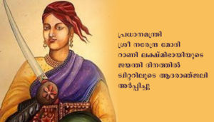 റിപ്പോര്ട്ട് ന ന്യൂസ് ഡെസ്ക് റാണി ലക്ഷ്മിഭായിയുടെ ജയന്തി ദിനത്തിൽ പ്രധാനമന്ത്രി ആദരാഞ്ജലി അർപ്പിച്ചു November 19, 2020 - 6:28 pm ന്യൂ ഡൽഹി: പ്രധാനമന്ത്രി ശ്രീ നരേന്ദ്ര മോദി റാണി ലക്ഷ്മിഭായിയുടെ ജയന്തി ദിനത്തിൽ ട്വിറ്ററിലൂടെ ആദരാഞ്ജലി അർപ്പിച്ചു Share