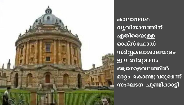 കാലാവസ്ഥ വ്യതിയാനത്തിന് എതിരെയുള്ള ഓക്സ്ഫോഡ് സര്‍വ്വകലാശാലയുടെ ഈ തീരുമാനം ആഗോളതലത്തില്‍ മാറ്റം കൊണ്ടുവരുമെന്ന് സംഘടന ചൂണ്ടിക്കാട്ടി. കൊറോണയേക്കാള്‍ അപകടകരം ആഗോള താപനമാണെന്ന് കഴിഞ്ഞ ദിവസം റെഡ് ക്രോസ് റിപ്പോര്‍ട്ടില്‍ ചൂണ്ടിക്കാട്ടിയിരുന്നു.