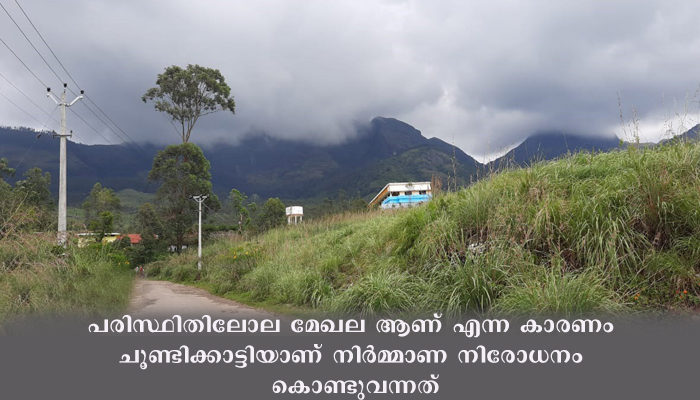 പരിസ്ഥിതിലോല മേഖല ആണ് എന്ന കാരണം ചൂണ്ടിക്കാട്ടിയാണ് നിർമ്മാണ നിരോധനം കൊണ്ടുവന്നത്. ചിന്നക്കനാൽ, പൂപ്പാറ, ബൈസൺവാലി, ആന വരട്ടി തുടങ്ങി ആറു വില്ലേജുകളിലാണ് ഒടുവിൽ നിർമ്മാണ നിയന്ത്രണം ഉണ്ടായിരുന്നത്. മതികെട്ടാനിൽ നിന്ന് ആനവിരട്ടി വില്ലേജിലൂടെ കടന്ന് ഇരവികുളം നാഷണൽ പാർക്കിലേക്ക് എത്തുന്ന ആനത്താര പദ്ധതിയുടെ ഭാഗമായിട്ടാണ് ഈ ആറു വില്ലേജുകളിൽ നിർമ്മാണ നിയന്ത്രണം കൊണ്ടുവന്നത് എന്ന വിവരം വൈകി പുറത്തുവന്നിരുന്നു. ഇതിനെ തുടർന്ന് ചിന്നക്കനാൽ കേന്ദ്രമാക്കി ശക്തമായ കർഷക പ്രക്ഷോഭം ഉണ്ടായി. എങ്കിലും നിർമ്മാണ നിരോധനം തുടരുകയായിരുന്നു. ഇത് ചോദ്യം ചെയ്തുകൊണ്ട് ഹൈക്കോടതിയിൽ ഹർജി വന്നു. പട്ടയം നൽകിയിരിക്കുന്നത് ഏത് ആവശ്യത്തിനാണോ അതല്ലാതെ മറ്റൊരു ആവശ്യത്തിന് ഭൂമി വിനിയോഗിച്ചാൽ പട്ടയം റദ്ദ് ചെയ്തു കൊണ്ട് ഭൂമി സർക്കാരിലേക്ക് തിരിച്ചുപിടിക്കുന്ന നിയമത്തിന്റെ അടിസ്ഥാനത്തിലാണ് നിർമ്മാണ നിരോധനം കൊണ്ടുവന്നത്.