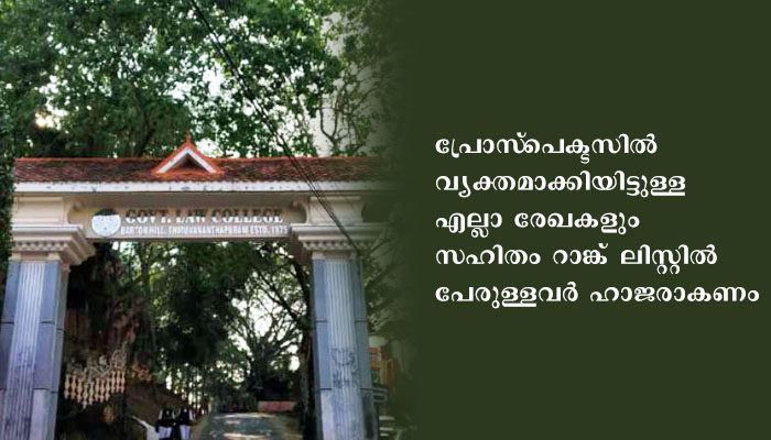 തിരുവനന്തപുരം: ഗവൺമെന്റ് ലോ കോളേജിൽ ത്രിവത്സര എൽ.എൽ.ബിയിൽ സാമ്പത്തികമായി പിന്നാക്കം നിൽക്കുന്ന വിഭാഗത്തിൽ  (EWS) ഒഴിവുള്ള മൂന്ന് സീറ്റിലേക്ക് 23ന് രാവിലെ 11ന് കോളേജിൽ സ്‌പോട്ട് അഡ്മിഷൻ നടക്കും. പ്രോസ്‌പെക്ടസിൽ വ്യക്തമാക്കിയിട്ടുള്ള എല്ലാ രേഖകളും സഹിതം റാങ്ക് ലിസ്റ്റിൽ പേരുള്ളവർ ഹാജരാകണം.