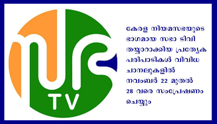 തിരുവനന്തപുരം: കേരള നിയമസഭയുടെ ഭാഗമായ സഭാ ടിവി തയ്യാറാക്കിയ പ്രത്യേക പരിപാടികൾ വിവിധ ചാനലുകളിൽ നവംബർ 22 മുതൽ 28 വരെ സംപ്രേഷണം ചെയ്യും. സെൻട്രൽ ഹാൾ, കേരള ഡയലോഗ് ട്രാൻസ്‌ജെൻഡർ എന്നീ പരിപാടികളുടെ സമയക്രമം പ്രസിദ്ധീകരിച്ചു. സെൻട്രൽ ഹാൾ പരിപാടിയിൽ മധുവുമായി കെ.ബി.ഗണേഷ്‌കുമാർ എം.എൽ.എയും കെ.എ. ബീനയും നടത്തുന്ന അഭിമുഖമാണ് സംപ്രേഷണം ചെയ്യുന്നത്.