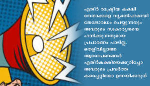 സമുദായങ്ങള്, ജാതികള്, ഭാഷാ വിഭാഗങ്ങള് എന്നിവ തമ്മില് നിലനില്ക്കുന്ന സംഘര്ഷങ്ങള് മൂര്ച്ചിക്കുന്നതിനിടയാക്കുന്ന പ്രവര്ത്തനങ്ങള് ഉണ്ടാകരുത്. മറ്റ് പാര്ട്ടികളെക്കുറിച്ചുള്ള വിമര്ശനം നയപരിപാടികളെക്കുറിച്ച് മാത്രമാകണം. എതിര് രാഷ്ട്രീയ കക്ഷി നേതാക്കളെ വ്യക്തിപരമായി തേജോവധം ചെയ്യുന്നതും അവരുടെ സ്വകാര്യതയെ ഹനിക്കുന്നതുമായ പ്രചാരണം പാടില്ല. തെളിവില്ലാത്ത ആരോപണങ്ങള് എതിര്കക്ഷിയെക്കുറിച്ചോ അവരുടെ പ്രവര്ത്തകരെപ്പറ്റിയോ ഉന്നയിക്കരുത്.