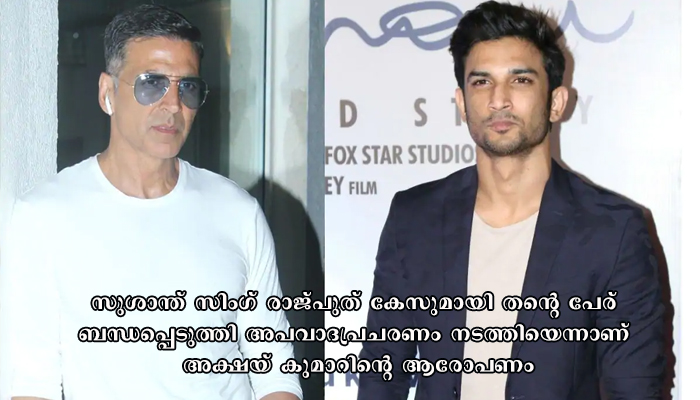 മുംബൈ: ബീഹാര്‍ സ്വദേശിയായ റാഷിദ് സിദ്ദിഖി എന്ന യുട്യൂബര്‍ക്കെതിരെയാണ് 500 കോടിയുടെ മാനനഷ്ടകേസ് ഫയൽ ചെയ്ത് അക്ഷയ് കുമാര്‍ നോട്ടീസ് നല്‍കിയിരിക്കുന്നു. സുശാന്ത് സിംഗ് രാജ്‍പുത് കേസുമായി തന്റെ പേര് ബന്ധപ്പെടുത്തി അപവാദപ്രചരണം നടത്തിയെന്നാണ് അക്ഷയ് കുമാറിന്റെ ആരോപണം. സുശാന്ത് സിംഗിന്റെ മരണവുമായി ബന്ധപ്പെട്ട് വ്യാജ വാര്‍ത്തകളിലൂടെ ഹേറ്റ് ക്യാപെയ്ന്‍ നടത്തിയതായി ആരോപിക്കപ്പെട്ട വ്യക്തിയാണ് റാഷിദ് സിദ്ദിഖ്.