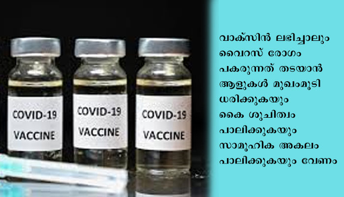 വാക്സിന് ലഭിച്ചാലും വൈറസ് രോഗം പകരുന്നത് തടയാന് ആളുകള് മുഖംമൂടി ധരിക്കുകയും കൈ ശുചിത്വം പാലിക്കുകയും സാമൂഹിക അകലം പാലിക്കുകയും വേണം. മഹാമാരിയുടെ രണ്ടാം തരംഗത്തെ അഭിമുഖീകരിക്കുന്ന യുഎസ്, യൂറോപ്യന് രാജ്യങ്ങളെയും ഉദാഹരണമായി കാണിച്ചുകൊണ്ടാണ് അദ്ദേഹം ഇക്കാര്യം പറഞ്ഞത്.