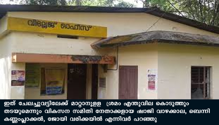 സ്മാര്ട്ട് വില്ലേജാഫീസ് നിര്മ്മിക്കാന് കഞ്ഞിക്കുഴി പഞ്ചായത്ത് ഏഴ് സെന്റ് സ്ഥലം വിട്ടുനല്കിയിരുന്നു. സര്ക്കാര് 44 ലക്ഷം രൂപ അനുവദിക്കുകയും ചെയ്തിരുന്നു. എന്നാല് ഒരുവിഭാഗം ഇത് അട്ടിമറിക്കുകയാണെന്നും കഞ്ഞിക്കുഴിയുടെ വികസനത്തിന് തുരങ്കം വയ്ക്കുകയാണെന്നും വികസന സമിതി നേതാക്കള് പറഞ്ഞു. വര്ഷങ്ങളായി കഞ്ഞിക്കുഴിയില് പ്രവര്ത്തിക്കുന്ന ഓഫീസാണിത്. ഇത് ചേലച്ചുവട്ടിലേക്ക് മാറ്റാനുളള ശ്രമം എന്തുവില കൊടുത്തും തടയുമെന്നും വികസന സമിതി നേതാക്കളായ ഷാജി വാഴക്കാല, ബെന്നി കണ്ണംപ്ലാക്കല്, ജോയി വരിക്കയില് എന്നിവര് പറഞ്ഞു.