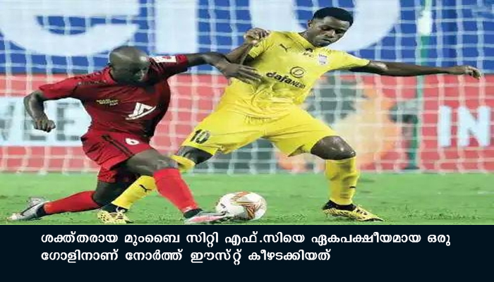 മഡ്ഗാവ്: ഐ.എസ്.എല് ഫുട്ബോള് ഏഴാം സീസണിലെ രണ്ടാം മത്സരത്തില് നോര്ത്ത് ഈസ്റ്റ് യുണൈറ്റഡിനു ജയം. ശക്ത്തരായ മുംബൈ സിറ്റി എഫ്.സിയെ ഏകപക്ഷീയമായ ഒരു ഗോളിനാണ് നോര്ത്ത് ഈസ്റ്റ് കീഴടക്കിയത്. നോര്ത്ത് ഈസ്റ്റിനായി ഘാന താരം കെവസി അപിയ പെനാല്റ്റി ലക്ഷ്യത്തിലെത്തിച്ച് ആദ്യമത്സരം അവിസ്മരണീയമാക്കി.