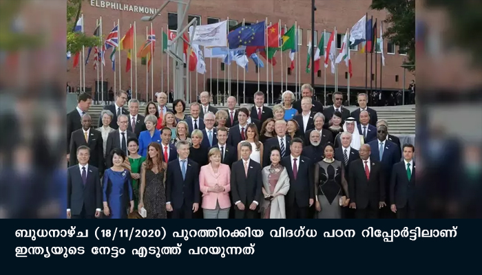 യൂറോപ്യൻ യൂണിയൻ, ബ്രിട്ടൻ, അമേരിക്ക എന്നിവ ഉൾപ്പെടുന്ന അന്താരാഷ്ട്ര ഫോറമാണ് ജി 20. റിപ്പോർട്ട് അനുസരിച്ച്, 2009 ൽ നിശ്ചയിച്ചിട്ടുള്ള മലിനീകരണ ലക്ഷ്യങ്ങൾ നിറവേറ്റുന്ന ഒരേയൊരു സംഘാംഗം ഇന്ത്യ മാത്രമാണ്. എല്ലാ രാജ്യങ്ങളും തങ്ങളുടെ മലിനീകരണം ഈ പരിധിക്കുള്ളിൽ സൂക്ഷിക്കുകയാണെങ്കിൽ, ആഗോളതാപനം 2 ഡിഗ്രി C എന്ന നിലയിൽ തുടരും. പാരിസ് കാലാവസ്ഥാ ഉടമ്പടി പ്രകാരം 1.5 ഡിഗ്രി സെൽഷ്യസിൽ താപനനിരക്ക് പിടിച്ചു നിർത്തേണ്ടതുണ്ട്.
