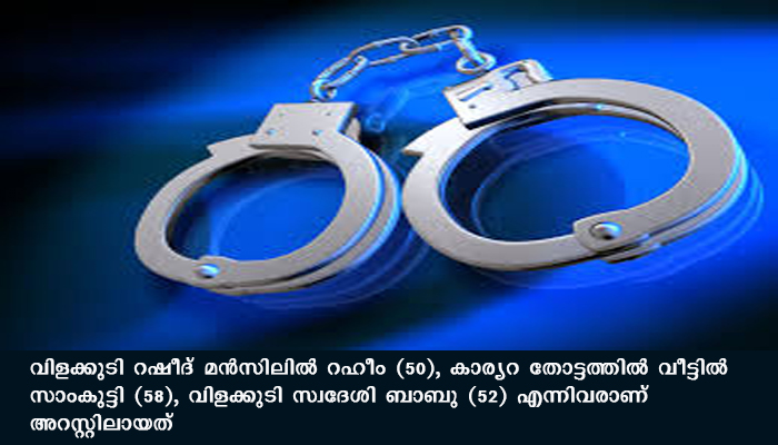 കൊല്ലം: അനുജനെ തല്ലിയ കേസില് ചോദിക്കാനെത്തിയ സഹോദരങ്ങളെ ആസിഡ് ഒഴിച്ച് പൊളളലേല്പ്പിച്ച കേസില് മൂന്നുപേരെ പുനലൂര് പോലീസ് അറസ്റ്റ് ചെയ്തു. വിളക്കുടി റഷീദ് മന്സിലില് റഹീം (50), കാര്യറ തോട്ടത്തില് വീട്ടില് സാംകുട്ടി (58), വിളക്കുടി സ്വദേശി ബാബു (52) എന്നിവരാണ് അറസ്റ്റിലായത്. വിളക്കുടി സ്വദേശികളായഷാജി, അനുജന് ഷെരീഫ് എന്നിവരെ ആസിഡ് ഒഴിച്ച് പൊളളലേല്പ്പിച്ചുവെന്നതാണ് കേസ്