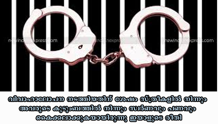 വിവാഹാലോചന നടത്തിയതിന് ശേഷം സ്ത്രീകളിൽ നിന്നും അവരുടെ കുടുംബത്തിൽ നിന്നും സ്വര്‍ണവും പണവും കൈക്കലാക്കുകയായിരുന്നു ഇയാളുടെ രീതി. വിവാഹ ഏജന്‍സികളില്‍നിന്നും മറ്റും സ്ത്രീകളുടെ വിവരങ്ങള്‍ ശേഖരിച്ച്‌ കുടുംബത്തെ നേരിൽ സമീപിക്കുകയാണ് ഇയാള്‍ ചെയ്തിരുന്നത്
