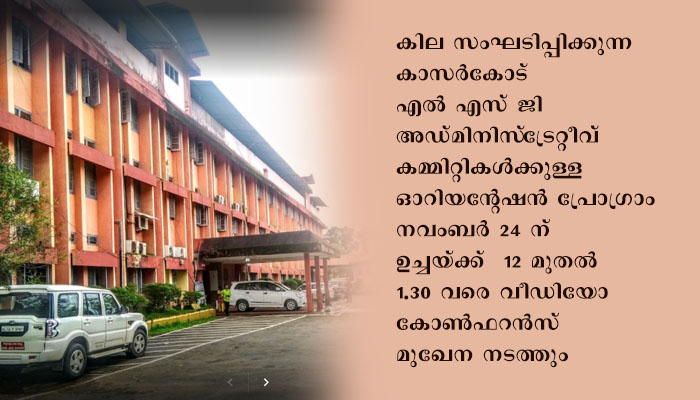 കാസർകോഡ്: കില സംഘടിപ്പിക്കുന്ന കാസര്കോട് എല് എസ് ജി അഡ്മിനിസ്ട്രേറ്റീവ് കമ്മിറ്റികള്ക്കുള്ള ഓറിയന്റേഷന് പ്രോഗ്രാം നവംബര് 24 ന് ഉച്ചയ്ക്ക് 12 മുതല് 1.30 വരെ വീഡിയോ കോണ്ഫറന്സ് മുഖേന നടത്തും. എല് എസ് ജി ഡി പ്രിന്സിപ്പല് സെക്രട്ടറി, കെ എസ് ഡി എം ഒ മെമ്പര് സെക്രട്ടറി,ജില്ലാകളക്ടര്,ജില്ലാ മെഡിക്കല് ഓഫീസര് തുടങ്ങിയവര് പ്രോഗ്രാമില് പങ്കെടുക്കും .ഗ്രാമപഞ്ചായത്തിലെ അഡ്മിനിസ്ട്രേറ്റീവ് കമ്മിറ്റിയില് ഉള്പ്പെട്ട ഗ്രാമപഞ്ചായത്ത് സെക്രട്ടറി,അസിസ്റ്റന്റ് എഞ്ചിനീയര് ,കൃഷി ഓഫീസര് എന്നിവര് അതാത് ഗ്രാമപഞ്ചായത്തില് നിന്നും,ബ്ലോക്ക് പഞ്ചായത്തിന്റെ അഡ്മിനിസ്ട്രേറ്റീവ് കമ്മിറ്റിയില് ഉള്പ്പെട്ട ബ്ലോക്ക് പഞ്ചായത്ത് സെക്രട്ടറി,അസിസ്റ്റന്റ് എക്സിക്യൂട്ടീവ് എഞ്ചിനീയര്,കൃഷി വകുപ്പ് എ ഡി എന്നിവര് അതാത് ബ്ലോക്ക് പഞ്ചായത്ത് ഓഫീസില് നിന്നും മുനിസിപ്പല്തല അഡ്മിനിസ്ട്രേറ്റീവ് കമ്മിറ്റിയില് ഉള്പ്പെട്ട മുനിസിപ്പല് സെക്രട്ടറി,മുനിസിപ്പാലിറ്റി അസിസ്റ്റന്റ് എഞ്ചിനീയര്,സിഡിപിഒ എന്നിവര് അതത് നഗരസഭകളില് നിന്നും മറ്റുള്ളവര് സൗകര്യപ്രദമായ കേന്ദ്രങ്ങളില് നിന്നും സൂം മുഖേന വീഡിയോ കോണ്ഫറന്സില് പങ്കെടുക്കണമെന്ന് കാസര്കോട് ഡെപ്യൂട്ടി കളക്ടര്(എല് എ) അറിയിച്ചു.