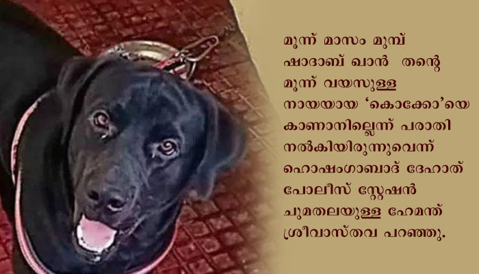 “മൂന്ന് മാസം മുമ്പ് ഷാദാബ് ഖാൻ തന്റെ മൂന്ന് വയസുള്ള നായയായ ‘കൊക്കോ’യെ കാണാനില്ലെന്ന് പരാതി നൽകിയിരുന്നുവെന്ന് ഹൊഷംഗാബാദ് ദേഹാത് പോലീസ് സ്റ്റേഷൻ ചുമതലയുള്ള ഹേമന്ത് ശ്രീവാസ്തവ പറഞ്ഞു.