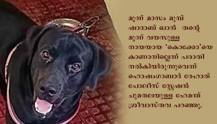 “മൂന്ന് മാസം മുമ്പ് ഷാദാബ് ഖാൻ തന്റെ മൂന്ന് വയസുള്ള നായയായ ‘കൊക്കോ’യെ കാണാനില്ലെന്ന് പരാതി നൽകിയിരുന്നുവെന്ന് ഹൊഷംഗാബാദ് ദേഹാത് പോലീസ് സ്റ്റേഷൻ ചുമതലയുള്ള ഹേമന്ത് ശ്രീവാസ്തവ പറഞ്ഞു.