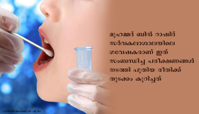 മുഹമ്മദ് ബിന് റാഷിദ് സര്വകലാശാലയും ദുബൈ ഹെല്ത്ത് അതോരിറ്റിയും സംയുക്തമായി നടത്തിയ ഗവേഷണത്തില്, ഉമിനീരില് നിന്നുളള കോവിഡ് പരിശോധനയ്ക്ക് 90 ശതമാനത്തിന് മുകളില് കൃത്യയുണ്ടെന്ന് കണ്ടെത്തി.