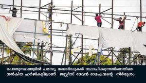 സംസ്ഥാന സര്ക്കാര് ഇക്കാര്യത്തില് സമഗ്രമായ നിയമം ഉണ്ടാക്കാനുളള നടപടികളെടുക്കുകയാണെന്നും രണ്ടാഴ്ച സമയം വേണമെന്നും സ്റ്റേറ്റ് അറ്റോര്ണി അറിയിച്ചു. സംസ്ഥാന തെരഞ്ഞെടുപ്പ് കമ്മീഷന് സര്ക്കുലര് ഇറക്കിയിട്ടുണ്ടെന്ന് അമിക്കസ്ക്യൂറി കോടതിയുടെ ശ്രദ്ധയില് പെടുത്തി. എന്നാല് സര്ക്കുലര് പ്രകാരമുളള കാര്യങ്ങള് നടപ്പാക്കിയിട്ടില്ലെന്നും അമിക്കസ് ക്യൂറി അറിയിച്ചു.