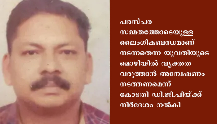 കൊച്ചി: ഉഭയസമ്മതപ്രകാരം നടന്ന ലൈംഗിക ബന്ധമാണെന്നും പ്രതി തന്നെ പീഡിപ്പിച്ചിട്ടില്ലെന്നും ഹെല്‍ത്ത് ഇന്‍സ്പെക്ടര്‍ പീഡിപ്പിച്ചെന്ന കേസിലെ പരാതിക്കാരി. പീഡനം നടന്നിട്ടില്ലെന്ന് പരാതിക്കാരിയായ യുവതി ഹൈകോടതിയില്‍ സത്യവാങ്മൂലം നല്‍കി.
