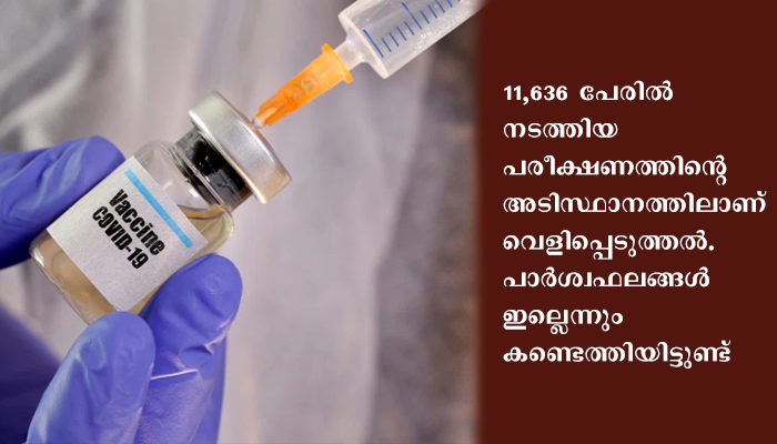 70.4 ശതമാനവും ഫലപ്രദമെന്നാണ് വ്യക്തമാക്കിയത്. 11,636 പേരില് നടത്തിയ പരീക്ഷണത്തിന്റെ അടിസ്ഥാനത്തിലാണ് വെളിപ്പെടുത്തല്. പാര്ശ്വഫലങ്ങള് ഇല്ലെന്നും കണ്ടെത്തിയിട്ടുണ്ട്. വാക്സിന് കുറഞ്ഞ വിലയില് വിപണിയിലെത്തും.