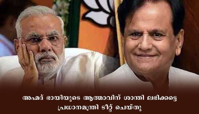 “അഹ്മ്മദ് പട്ടേലിന്റെ നിര്യാണം ദുഃഖിപ്പിക്കുന്നു. സമൂഹത്തെ സേവിച്ചുകൊണ്ട് വർഷങ്ങൾ അദ്ദേഹം പൊതുരംഗത്ത് ചെലവഴിച്ചു. നിശിതമായ ബുദ്ധി കൂർമതയുടെ പേരിൽ അറിയപ്പെട്ടിരുന്ന അദ്ദേഹം കോൺഗ്രസ് പാർട്ടിയെ ശക്തിപ്പെടുത്തുന്നതിൽ, വഹിച്ച പങ്ക് എപ്പോഴും ഓർമ്മിക്കപ്പെടും. അദ്ദേഹത്തിൻറെ മകൻ ഫൈസലിനോട് സംസാരിച്ചു, അനുശോചനമറിയിച്ചു. അഹ്മദ് ഭായിയുടെ ആത്മാവിന് ശാന്തി ലഭിക്കട്ടെ”,പ്രധാനമന്ത്രി ടീറ്റ് ചെയ്തു.