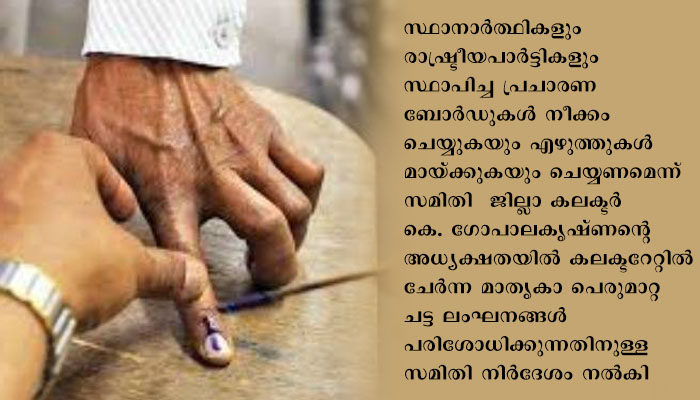 മലപ്പുറം: പൊതുസ്ഥലങ്ങളില് സ്ഥാനാര്ത്ഥികളും രാഷ്ട്രീയപാര്ട്ടികളും സ്ഥാപിച്ച പ്രചാരണ ബോര്ഡുകള് നീക്കം ചെയ്യുകയും എഴുത്തുകള് മായ്ക്കുകയും ചെയ്യണമെന്ന് സമിതി ജില്ലാ കലക്ടര് കെ. ഗോപാലകൃഷ്ണന്റെ അധ്യക്ഷതയില് കലക്ടറേറ്റില് ചേര്ന്ന മാതൃകാ പെരുമാറ്റ ചട്ട ലംഘനങ്ങള് പരിശോധിക്കുന്നതിനുള്ള സമിതി നിര്ദേശം നല്കി. മാതൃക പെരുമാറ്റചട്ടം ലംഘിക്കുന്നവര്ക്കെതിരെ കര്ശന നടപടി സ്വീകരിക്കാനും യോഗം തീരുമാനിച്ചു. റോഡുകള് കെട്ടിടങ്ങള് എന്നിവ അടക്കമുളള പൊതു ഇടങ്ങളില് സ്ഥാപിച്ച ബോര്ഡുകള്, ബാനറുകള്, കൊടിതോരണങ്ങള്, നോട്ടീസുകള്, എഴുത്തുകള് എന്നിവ അതത് സ്ഥാനാര്ഥികളും രാഷ്ട്രീയ പാര്ട്ടികളും നീക്കം ചെയ്യണം. നീക്കം ചെയ്യാത്തവ ആന്റി ഡിഫേസ്മെന്റ് സ്ക്വാഡിന്റെ നേതൃത്വത്തില് നീക്കം ചെയ്യും. ഇതിന്റെ ചെലവ് അതത് സ്ഥാനാര്ത്ഥിയുടെ തെരെഞ്ഞെടുപ്പ് ചെലവില് ഉള്പ്പെടുത്തും. ഇങ്ങനെ ചെയ്യുമ്പോള് സ്ഥാനാര്ത്ഥികള്ക്ക് ചെലവഴിക്കാവുന്ന പരമാവധി തുകയില് കൂടുതലായാല് അയോഗ്യതക്ക് കാരണമാവും. ആന്റി ഡിഫേസ്മെന്റ് നടപടികള്ക്ക് നേതൃത്വം വഹിക്കുന്നതിന് എല്ലാ റിട്ടേണിങ് ഓഫീസര്മാര്ക്കും നിര്ദേശം നല്കി. പ്രവര്ത്തനങ്ങള് ഏകോപിപ്പിക്കുന്നതിന് ജില്ലാ നോഡല് ഓഫീസറായി പെരിന്തല്മണ്ണ സബ് കലക്ടര് കെ.എസ് അഞ്ജുവിനെ ചുമതലപ്പെടുത്തി.