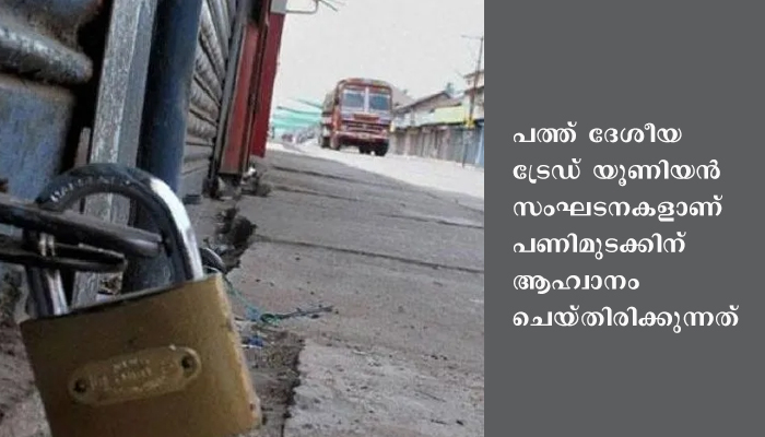 എ.ഐ.ടി.യു.സി, എ.ഐ.സി.സി.ടി.യു, സി.ഐ.ടി.യു, എ.ഐ.ടി.യു.സി, ടി.യു.സി.സി, ഐ.എന്.ടി.യു.സി, എച്ച്.എം.എസ്, എസ്.ഇ.ഡബ്ല്യൂ.എ, എല്.പി.എഫ്, യു.ടി.യു.സി എന്നീ പത്ത് ദേശീയ ട്രേഡ് യൂണിയന് സംഘടനകളാണ് പണിമുടക്കിന് ആഹ്വാനം ചെയ്തിരിക്കുന്നത്.