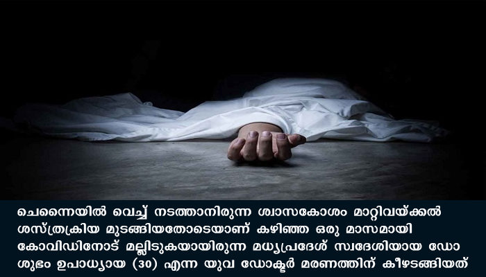കോവിഡ് രോഗികളെ പരിശോധിക്കുകയായിരുന്ന ഡോക്ടറെ ഒക്ടോബര് 28നാണ് വൈറസ് ബാധയെ തുടര്ന്ന് ആശുപത്രിയില് പ്രവേശിപ്പിച്ചത്.