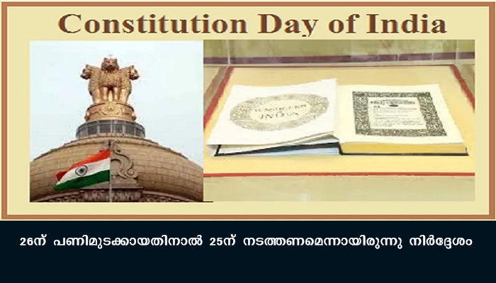 ഭരണഘടനാ ദിനാചരണം 25 ന് നടത്താന്‍ നിര്‍ദ്ദേശമുണ്ടായിരുന്നെങ്കിലും കേരളത്തില്‍ മാത്രം നടന്നില്ല