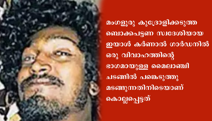 മംഗളൂരു: മംഗളൂരുവിൽ കുപ്രസിദ്ധനായ ക്രിമിനല് ഇന്ദ്രജിത്തിനെ (29) കൊല്ലപ്പെട്ട നിലയില് കണ്ടെത്തി. മംഗളൂരു കുദ്രോളിക്കടുത്ത ബൊക്കപട്ടണ സ്വദേശിയായ ഇയാൾ കര്ണാല് ഗാര്ഡനില് ഒരു വിവാഹത്തിന്റെ ഭാഗമായുള്ള മൈലാഞ്ചി ചടങ്ങില് പങ്കെടുത്തു മടങ്ങുന്നതിനിടെയാണ് കൊല്ലപ്പെട്ടത്.