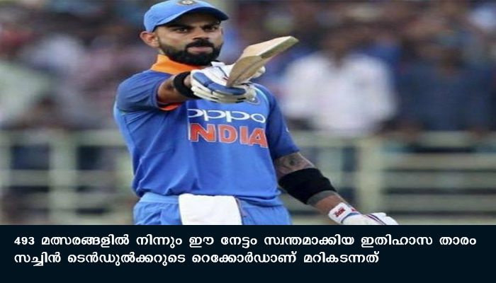 ഏറ്റവും വേഗത്തില് ഈ നേട്ടത്തിലെത്തുന്ന താരമാണ് വീരാട് കോഹ്ലി. 462 ഇന്നിങ്സുകളില് നിന്നുമാണ് അന്താരാഷ്ട്ര ക്രിക്കറ്റില് 22,000 റണ്സ് നേടാന് കോഹ്ലിയ്ക്ക് വേണ്ടിവന്നത്. 493 മത്സരങ്ങളില് നിന്നും ഈ നേട്ടം സ്വന്തമാക്കിയ ഇതിഹാസ താരം സച്ചിന് ടെന്ഡുല്ക്കറുടെ റെക്കോർഡാണ് മറികടന്നത്.