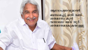 ഏത് വിഷയത്തിലാണ് കാര്യങ്ങള് പുറത്തുവരാനുള്ളത് എന്ന മാധ്യമപ്രവര്ത്തകരുടെ ചോദ്യത്തിന് ഈ വിഷയത്തില് തന്നെ അല്പം കൂടി കാര്യങ്ങള് പുറത്തുവരാനുണ്ടെന്നും കാത്തിരിക്കൂ എന്നുമായിരുന്നു ഉമ്മന് ചാണ്ടിയുടെ മറുപടി.