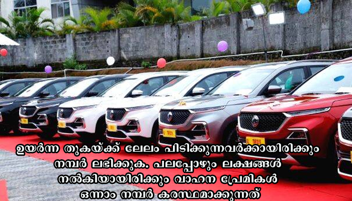 തിരുവനന്തപുരം: സംസ്ഥാനത്തെ വാഹന ഫാന്സി നമ്പരുകളുടെ ശ്രേണി വിപുലീകരിച്ചു പുതുതായി 58 നമ്പരുകള് കൂടി ഉള്പ്പെടുത്തി. ഈ നമ്പരുകള് ബുക്കുചെയ്യുന്നതിന് സര്ക്കാര് നിശ്ചയിട്ടിട്ടുളള തുക അടയ്ക്കണം. തുടര്ന്ന് ലേലം വിളിക്കും. ഉയര്ന്ന തുകയ്ക്ക് ലേലം പിടിക്കുന്നവര്ക്കായിരിക്കും നമ്പര് ലഭിക്കുക. പലപ്പോഴും ലക്ഷങ്ങള് നല്കിയായിരിക്കും വാഹന പ്രേമികള് ഒന്നാം നമ്പര് കരസ്ഥമാക്കുന്നത്.