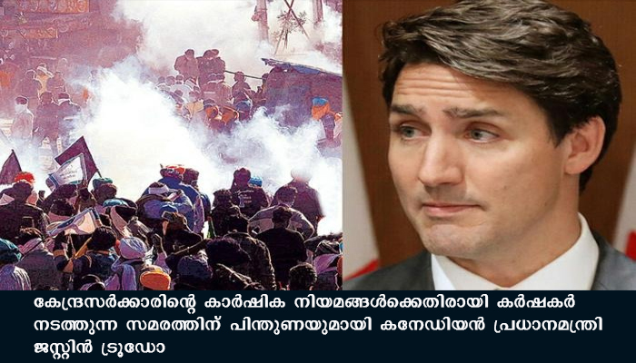 “കർഷകരുടെ പ്രതിഷേധത്തെക്കുറിച്ച് ഇന്ത്യയിൽ നിന്ന് വരുന്ന വാർത്തകൾ എങ്ങനെ ഗൗനിക്കാതിരിക്കും. നിലവിലെ ‘ സ്ഥിതിഗതികൾ സംബന്ധിച്ചാണ്. അവരെ പിന്തുണക്കേണ്ട സമയമാണ്. നാമെല്ലാവരും നമ്മുടെ കുടുംബം, സുഹൃത്തുക്കൾ എന്നിവരെക്കുറിച്ച് ആശങ്കാകുലരാണ്. നിങ്ങളിൽ പലർക്കും അത് ഒരു യാഥാർത്ഥ്യമാണെന്ന് ഞങ്ങൾക്കറിയാം. സമാധാനപരമായുള്ള പ്രതിഷേധക്കാരുടെ അവകാശങ്ങൾ സംരക്ഷിക്കാൻ കാനഡ എപ്പോഴും ഉണ്ടായിരിക്കുമെന്ന് ഞാൻ നിങ്ങളെ ഓർമ്മിപ്പിക്കുന്നു. ചര്ച്ചകളില് ഞങ്ങൾ വിശ്വസിക്കുന്നു. ഒന്നില് കൂടുതല് മാര്ഗങ്ങളിലൂടെ കേന്ദ്രത്തോട് ഞങ്ങള് ഞങ്ങളുടെ ആശങ്കകള് പങ്കുവെച്ചിട്ടുണ്ട്. നമ്മളൊരുമിച്ച് പ്രവര്ത്തിക്കേണ്ട സമയമാണിത്” -അദ്ദേഹം പറഞ്ഞു.